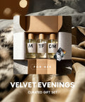 Velvet Evenings. Rich, warm and full of depth. Cherry, amber and plush florals come together to create a statement trio made for winter nights and occasions.